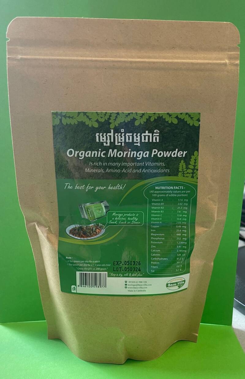 The Moringa Powder will be delivered in a 200 gram reclosable and recyclable bag (see picture). The powder has all the benfits and nutrician value as mentioned in the main page about Moringa.